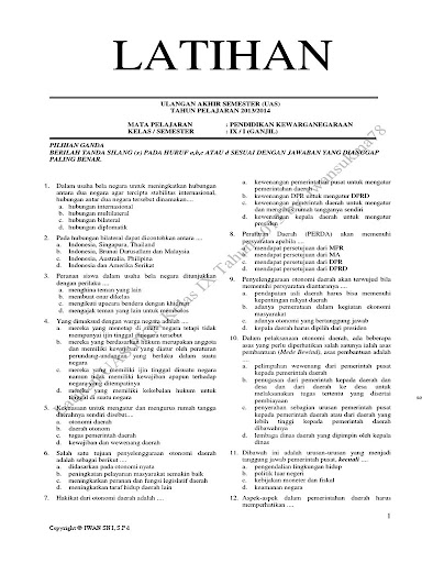 Ix / i (ganjil) pilihan ganda . Ulangan akhir semester (uas) tahun pelajaran 2013/2014 mata pelajaran kelas / semester : Untuk kalian yang sedang duduk di kelas 9 smp dapat mempelajari soal . Pilihan soal lengkap uas pas smp mts pkn semester ganjil | kumpulan arsip. Uas ppkn 9 (kur 2013) 1.